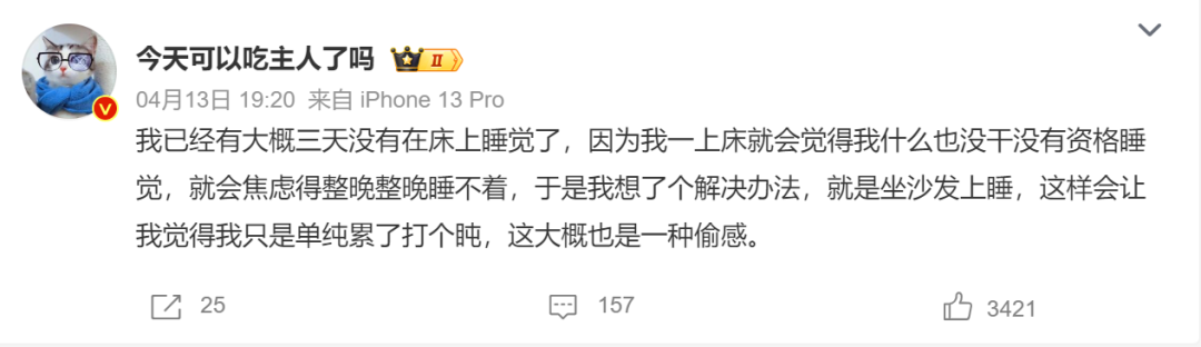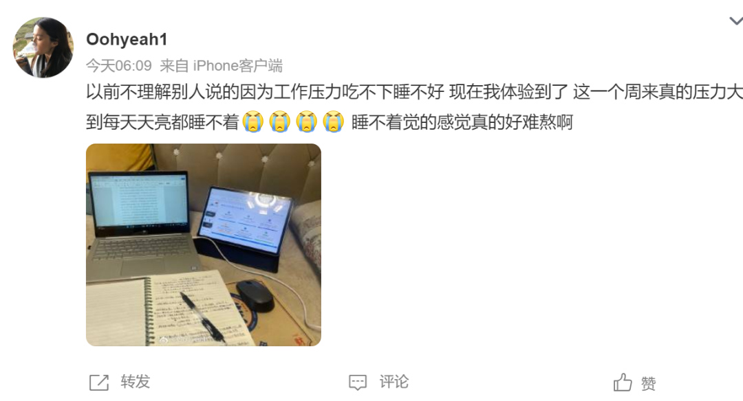 微博上很多網友都表示,壓力大、焦慮讓他們睡不好覺。
